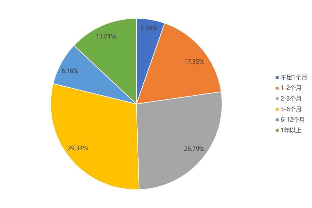 ? ? ??文化企業賬上資金支撐,不足一個月的占5.35%,1-2個月的占17.35%,2-3個月的占26.79%,3-6個月的占29.34%,6-12個月的占到8.16%,1年以上的占到13.01%。文化企業相比于其他行業(如餐飲業、商業等),具備一定的抗風險能力。