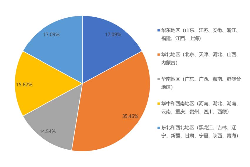 ? ? ??35.46%參與文化企業來自華北地區,17.09%參與文化企業來自華東地區,14.54%參與文化企業來自于華南地區,15.82%參與文化企業來自于華中和西南地區,17.09%參與文化企業來自于東北和西北地區。